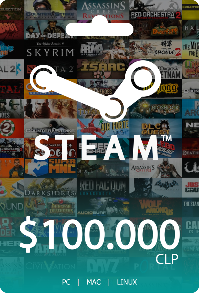 Este código o tarjeta de regalo añadirá $100.000 pesos chilenos a tu Steam Wallet CLP, IMPORTANTE sólo podrás canjearlo en cuentas de CHILE.